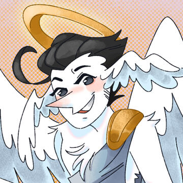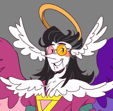 Spamton's tale"When Angels are born, they are immediately taken to "the Angel", so they can be marked down to which Sphere they belong to by checking their energy. Spamton is a messenger angel, at the lowest of the Spheres. His only job is to deliver the messages his superiors give him. That's it."Saying Spamton was bad at his job would be a compliment. He was a troublemaker and many of his superiors had warned him. If he didn't start behaving or doing his job right, "the Angel" would terminate their deal. Whatever that meant. If he got kicked from Heaven, he wouldn't have minded. Spamton didn't really have any friends. He watched as other angels formed friendships, or were in groups. But that's not what he was interested in.While on his travels to the Earthly Realm, he met a little girl by the name Noelle, who he found crying because she fell onto the floor while playing with her friends (and left her alone!) and her knee was bleeding. He sent one of his little Spamling Angels to heal her, but she found him. In a panic, Spamton lied to her, telling her he was her "Guardian Angel", and was there to protect her. Knowing Angels and Humans shouldn't have any close interactions, Spamton and Noelle decided to keep it a secret, and in exchange, he could learn about Humans.He was envious of how free Humans were. No hierarchy, no Spheres. They could live their lives the way they wanted. Him and Noelle formed a strong bond, maybe it was finally his turn to have... a friend? Or at least it was what he thought, until it all came crumbling down the day Dess disappeared. He couldn't bare seeing Noelle in that state, when he was "supposed" to be her Guardian Angel and protect her. He ran away cowardly, and lost any contact with her.After time, his biggest interest shifted, and Demons were that case. While he was scared of them (he was a really weak and cowardly angel, who was only good at healing, not attacking), but he was interested on how chaotic they were. No rules, nothing. They were free.He wanted to be free. But with the brand on his thigh put by The Angel since his birth as part of their deal, he knew he would never have this wish come true for him.Maybe... maybe if he could have someone who would understand him... someone who felt the same as him...