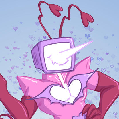 Tenna and KrisTenna was once at the “top of the food chain” of demons, given the title of Lord (nothing official as there is no proper hiearchy in Inferno). He used his natural charisma to entertain other demons with “demon-oriented entertainment", which were mostly torturing other creatures and so on. By then siphoning the energy from the demons that “loved” him, he grew stronger and stronger.It was until it was at his prime, during one of his shows that in the audience was a single human child. No one knew how this child ended up in such a dangerous place. Tenna was not sure what compeled him to he offer his hand to the tiny being, but they happily crawled up to his hand.As the child held onto his nose and their hair rose up due to all the static, the child smiled and giggled. Tenna realized that this was the kind of smiles that he wanted to see, the smiles he needed.So they sang, danced, and played games (dangerous games suited for a child, but Tenna was new to this "entertaining children" thing) until they became tired. But soon the other demons grew impatient and were convinced that Tenna was becoming soft. Tenna tried convincing them he wasn’t, but they thought this new “friendlier entertainment” was boring.In reluctance, Tenna sent Kris back to the earthly realm with Ralsei, fearing for their safety.But it was too late. His audience started to dwindle and his influence was dissipating. He desperatly tried to keep them, but word of his “compassion” spread among Inferno. And a part of the truth was that his heart wasn’t in it. Even in between shows, he would sneak away to the earthly realm to watch over Kris. To watch them smile. To watch them grow up.But even that didn’t last. Tenna had to watch as the family turned into turmoil. And watch as Kris’ smile fade as he was forgotten. And there was nothing he could do about it.