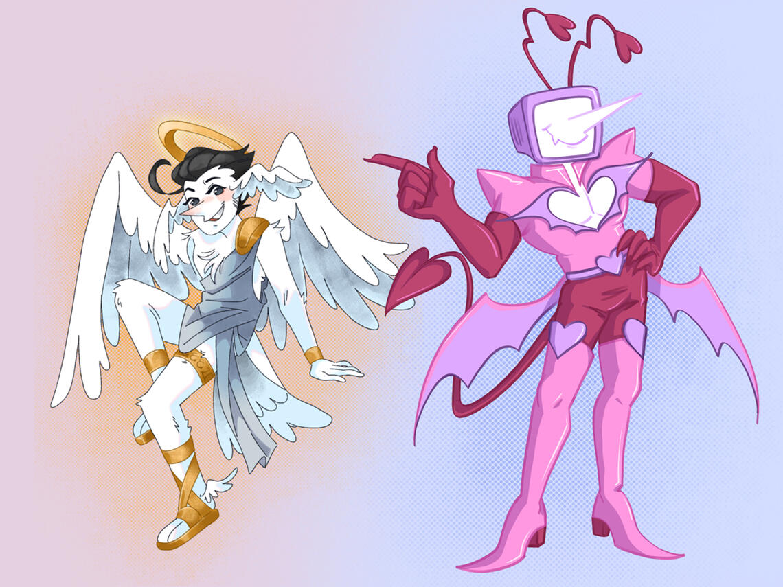 They soon learn about each other. How Tenna is a demon now living on Earth, how Spamton is a messenger angel. And how much in common both actually have. Two lonely souls, now comforted by their friendship, to which slowly turns into love. They know they shouldn't do this, angels should NEVER interact with demons, and vice versa. But the attraction and love they feel for each other is strong, and soon they consummate that love by having sex one day.A few days after their affair, Spamton asks the Queen, the angel in charge of all knowledge, to tell him about a demon named “Tenna”. She recognizes that name and finds information soon enough, about the Lord of the Screens, an evil demon who terrorized everything back in time, but, for unknown reasons, he suddenly lost all his followers and disappeared.On the other side, The Mikes ask Tenna about his actual power and size. He’s regained his height, or part of it, and question him if he’s actually consumed any energy. Being an incubus, they expect him to mention that he’s got hold of a human. But Tenna tells the Mikes about his sexual affair with Spamton, an angel he has fallen in love with, to which Battat freaks out, lashing at him how grave a mistake that was. While he’s partly happy his boss has regained energy, doing such an act with an angel was a mistake. He fears The Angel will hear of this, and try to take vengeance on Tenna and other demons. Battat warns Tenna to never see Spamton ever again, it could be a trap to kill him and other demons, to which Tenna dismisses, saying Spamton was different, and could never do that to him.